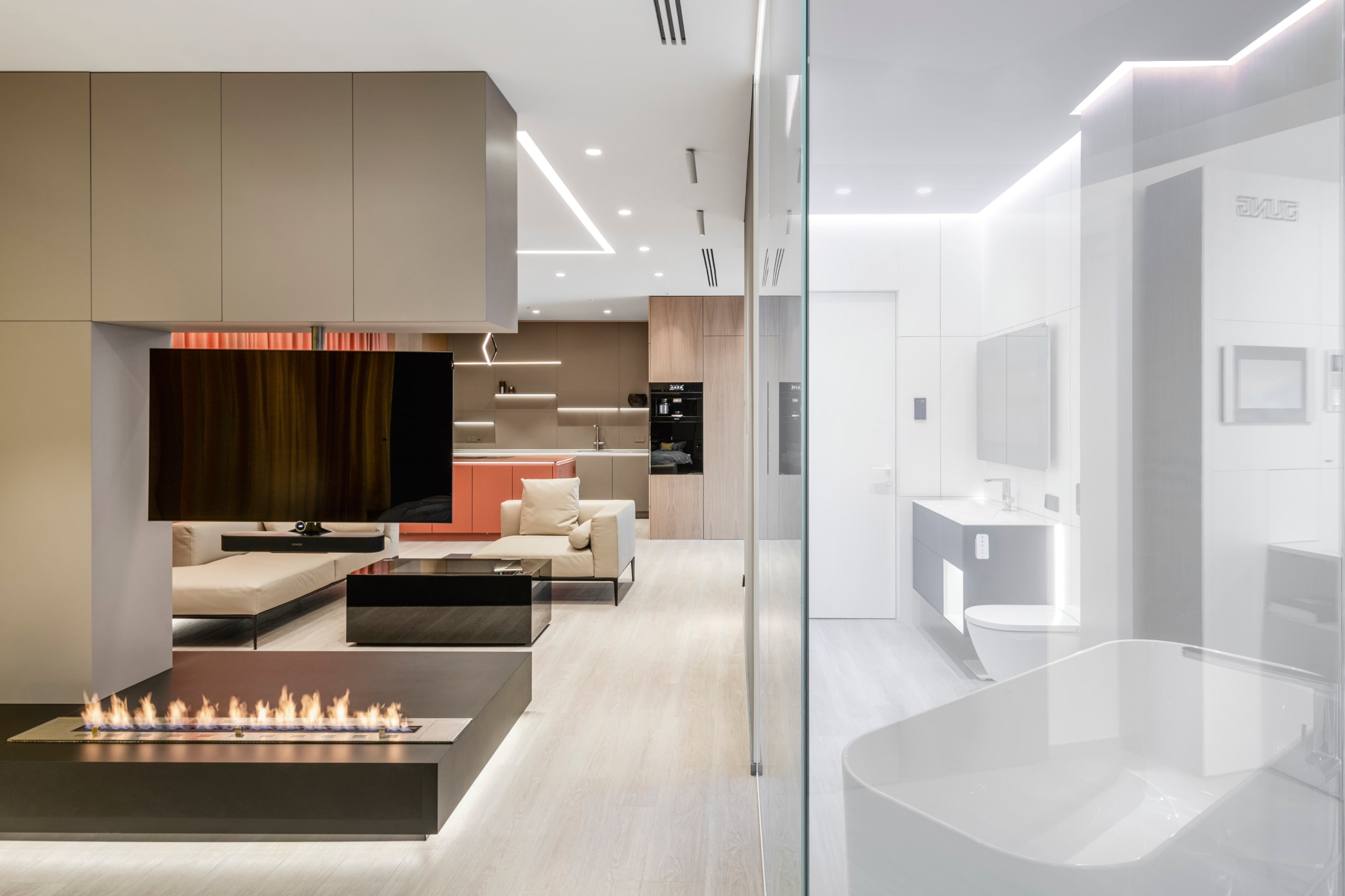 Unikalioje 270 kv. metrų patalpoje išmanūs pastatų sprendimai pristatomi realistiškose interjero erdvėse – realiame bute su virtuvės, svetainės, miegamojo ir vonios kambario zonomis, taip pat viešbučio kambaryje.